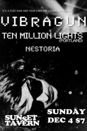 Ten Million Lights play Seattle with Vibragun on December 1, 2011March 25, 2012 By Ryan Come check out Ten Million Lights at The Sunset Tavern in Seattle, WA with friends Vibragun (Ex-Black Nite Crash) and Nestoria. Related